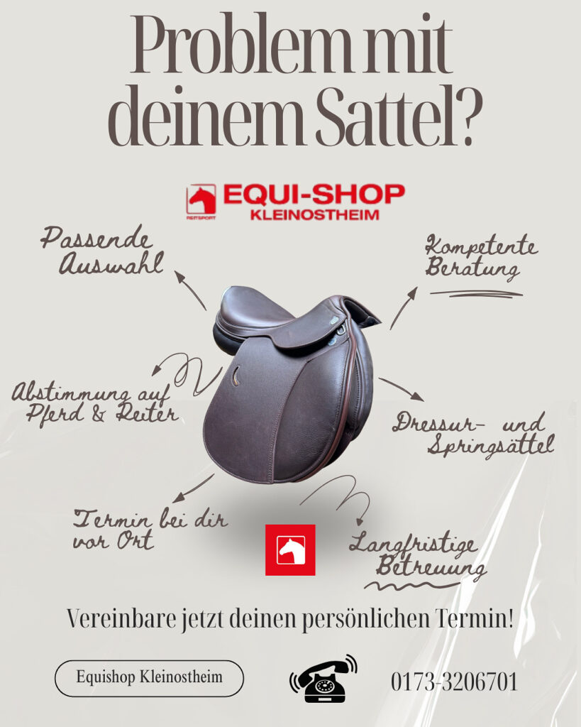 Der Equishop Kleinostheim bietet die individuelle Satteltermine an, bei denen wir auf eure individuellen Bedürfnisse eingehen. Gemeinsam finden wir für euch einen Sattel, der perfekt auf euch abgestimmt ist.